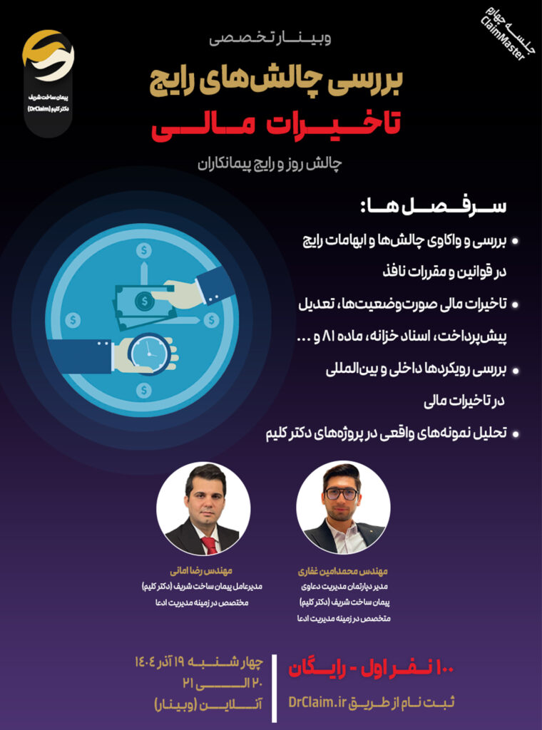 وبینار رایگان"بررسی چالش‌های رایج تاخیرات مالی" - ظرفیت باقی مانده 12 نفر